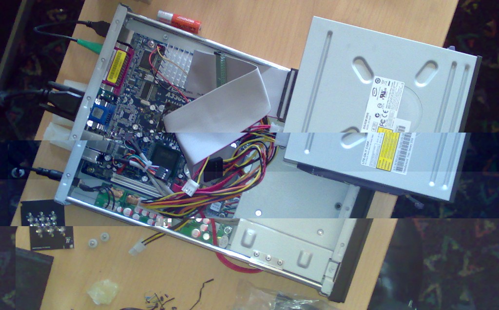 Aber nun noch ein paar Bilder. Hier der Rechner mit noch provisorisch angeschlossenem 5,25" Laufwerk, damit ich erst einmal XP installieren konnte.