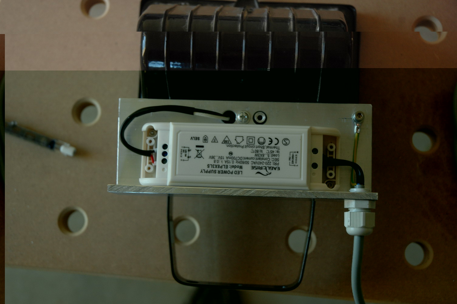 Nachdem bei meinem alten Baustrahler schon wieder mal die Lampe hin ist und ich vor ein paar Wochen ein paar Leds für Versuche gekauft habe, kam mir der Gedanke, doch das endlich zu machen. Ob es so wird und funzt wie ich mir das vorstelle, stellt sich dann im laufe der Zeit noch raus. Das ist mein Übeltäter und zugleich Versuchskaninchen. :mrgreen: