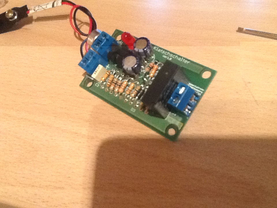 Ich würde auch ein 9V oder 12V Netzteil empfehlen. Schon der Ruhestrom des Klatschschalters dürfte > 10mA sein, wenn das Relais durchgeschaltet ist bestimmt schon um die 50mA. Also reicht eine Standard 9V Batterie (gute haben ~ 500mAh) auch wenn gar nichts angeschlossen wird im 'eingeschalteten' Zustand nicht mal einen Tag...