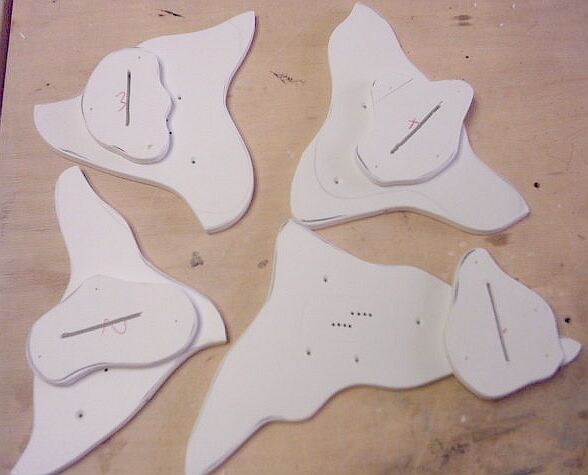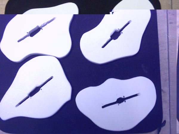 die geschnittenen teile, daneben das zarte maschinchen zum abschnippeln. tipp, beim acryl-schneiden kann