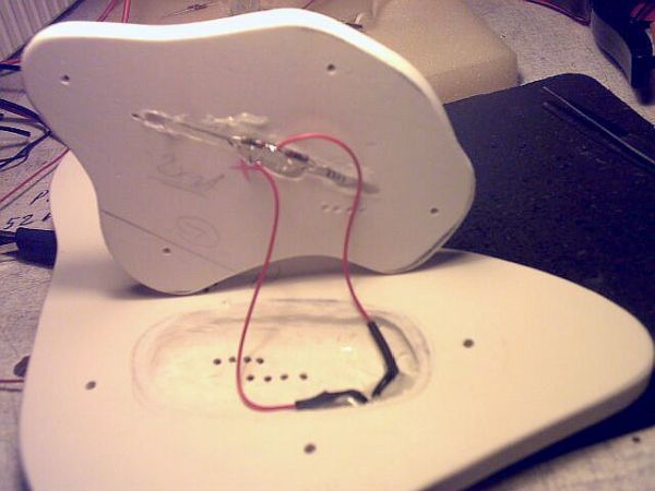 hier kommt die stromzuführung rein. durchgangsbohrung 3,5mm. je nachdem, was für n netzteil zur