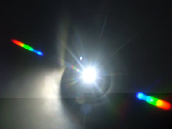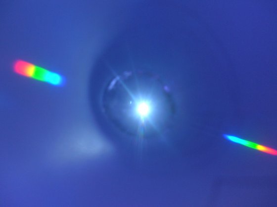 ihr könnt die lichtbrechung auch mit einer CD erreichen. Nehmt einfach eine CD und bestrahlt sie mit der LED. Haltet ihr die CD richtig (ein bisschen schief) dann müsstet ihr an der wand das spektrm sehen. Bei mir hats auf jedenfall funktioniert!