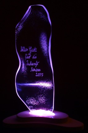 Da ich für meine Nichte eine Gratulationskarte zur Konfirmation brauchte, hab´ ich so´n Acryl-Dingens nachgebaut, mit einem Gruß versehen und mit einer Rainbow-LED bestückt.