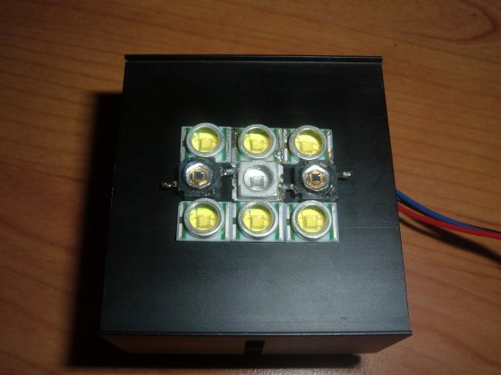 Schaut nicht schlecht aus, sehr gute arbeit, aber mal ne frage, könntest du mal bitte Bilder machen von den Betrieb der einzelnen Led Paare? Also von den 6 Cree XR-E Bin-P4 - 2 Royalblau K2 - und der einen Cree XL UV-A Led.
