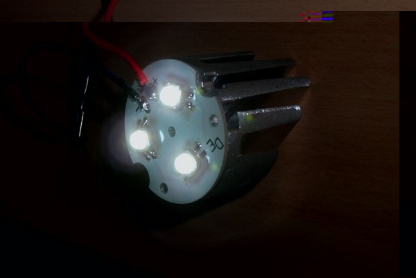 Hier das gewünschte Bild mit 3 Cree XR-E Bin-P4 und 700ma.