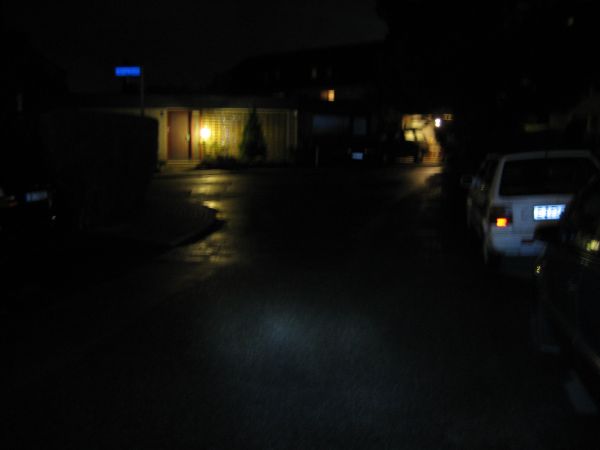 Mit dem Originalen Reflektor der Fahrradlampe wird der gesammte Bereich vor einem Ausgeleuchtet, man kann also auch gut nach links und rechts schauen und Bäume oder tief hängende Äste problemlos erkennen. Ein heller gebündelter Strahl der nach vorn zeigt leuchtet ca. bis 12m vor einem noch hellgenug auf den boden. Und Hindernisse oder auch Parkbänke/Mülleimer reflektieren sich schon in ca. 25m Entfernung. Und das alles schon bei 350mA!!!