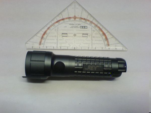 Taschenlampe mit Geodreieck zum Größenvergleich :