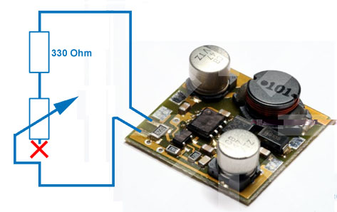 Ich dachte das es am besten ist den 330er raus zu löten, und durch einen nichst SMD 330er der in Reihe zum Poti ist zu ersetzen.