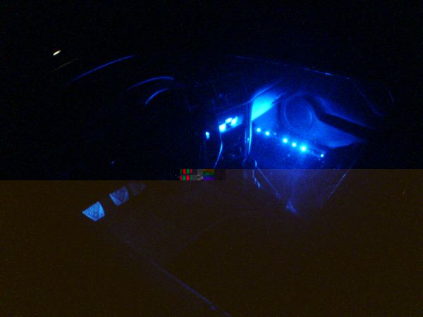 50 x 3mm blaue leds im linken fußraum und im kabelkanal.