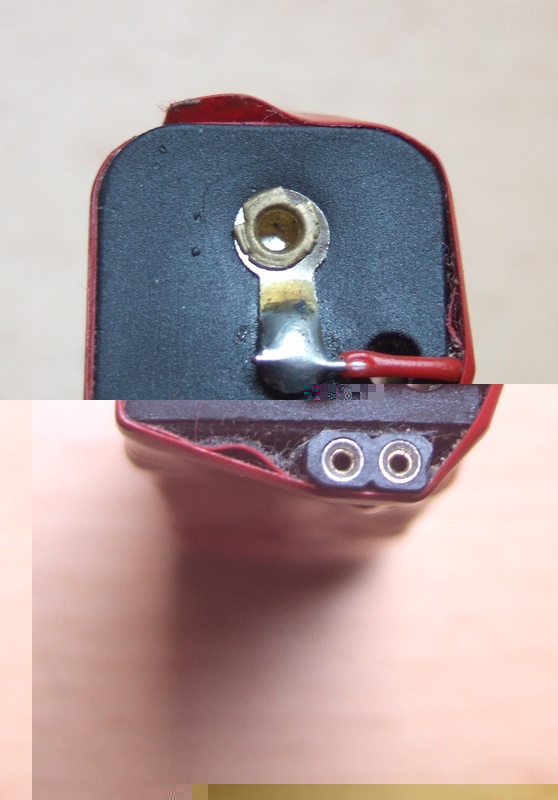 Der Schalter: Der Tester von oben, mit den Leisten um die LED's reinzustecken: Der fertige Tester mit der Batterie: Die Rückseite des Testers. Unter dem Isolierband ist der Taster und der PR4401 mit der Spule: Das Ding ist wirklich super. LED rein, Taster drücken und schon sieht man was für eine Farbe die LED hat und ob sie noch geht.