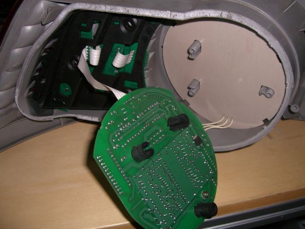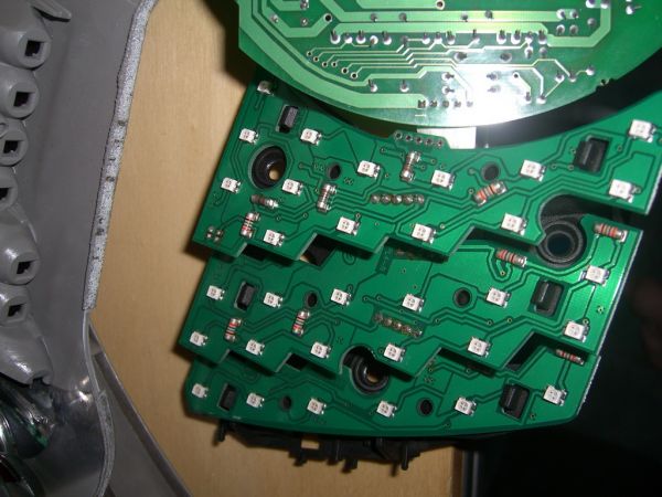 Gesamte Rückleuchte von hinten. Ansicht auf die Linsen Ansicht auf die Linsen Steuerungsplatine, eigentlich ist über dem IC nen Schirmblech! Steuerungsplatine von hinten Paltine für Blinker und Rücklicht glaub ich, sind jedenfalls zweifarbige! Bremslichtplatine sollte das sein! Nahaufnahme der Bremslichtled´s Versuch die Led´s während des Betriebes zu zeigen Im Gehäuse Hier nur der halbe Ring Denke mal das hat jeder schonmal gesehen der hinter ein Phaeton war.
