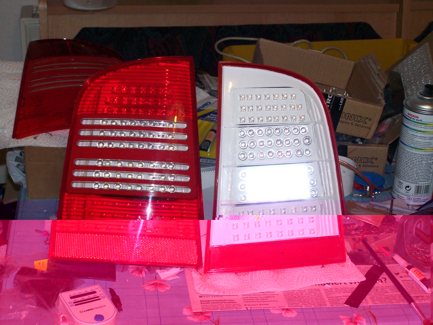 hier ganz gut zu ekennen die led´s scheinen direkt auf Streuscheiben!