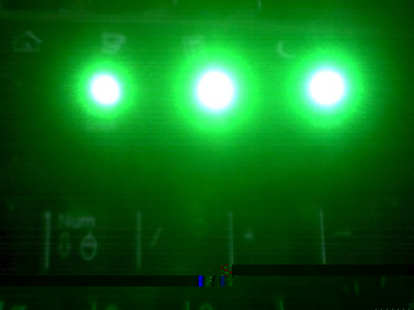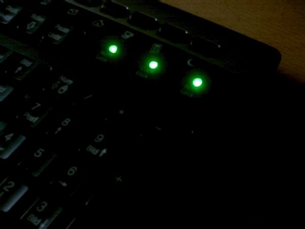 Hihi, ich habs auch gemacht. Bei mir wurden die ebenfalls grünen (schwach leuchtenden Strandard-LEDs) gegen moderne blaue und eine rote (für Caps Lock) getauscht. Die (dauerhaft leuchtende) LED für Num Lock hat einen zusätzlichen Widerstand bekommen, damit sie mich nicht blendet.