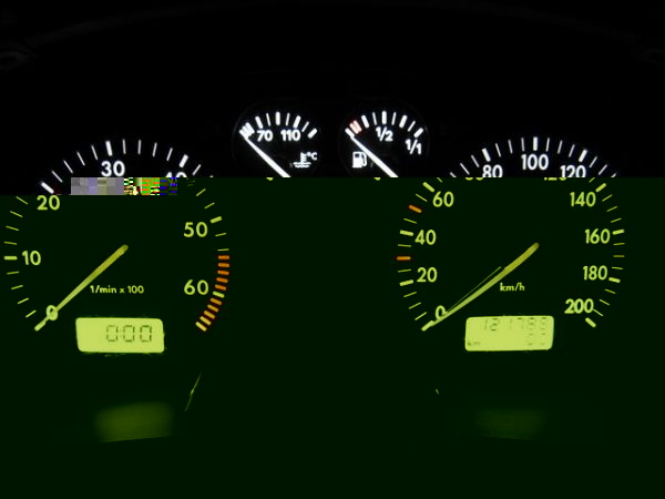 Der gesammte Tacho von 4 SMD-LED´s mit einem Abstrahlwinkel von 120°, somit habe ich eine bessere Ausleuchtung.