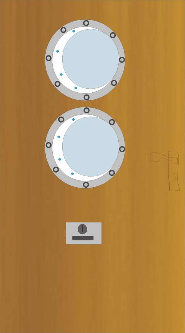 Bei dieser Überlegung bin ich davon ausgegangen, daß das Bullauge genau so dick ist wie die Tür, evtl. mit zwei Gläsern und dazwischen Luft.