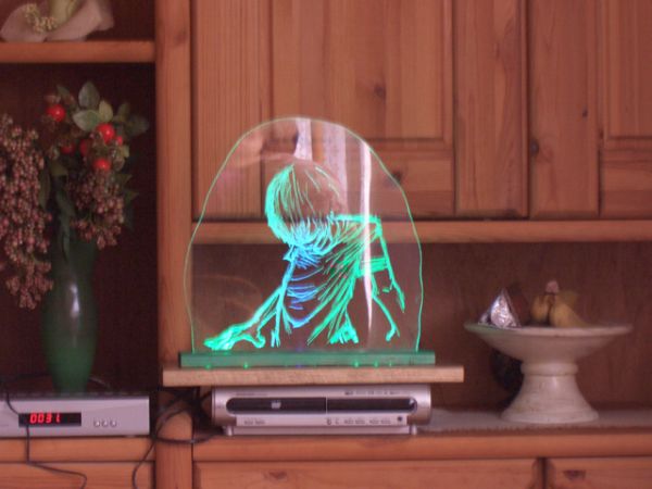 Ich zeig euch erst ma mein Walpaper. Das diente als Vorlage! Und das Ergebnis! Das war nur'n Test! Wie ihr sicher seht steckt da nur eine Led in der Bohrung. Wenn ich's hinbekomme soll da ne rgb Steuerung rein, deswegen sind da auch so viele Bohrungen drin!