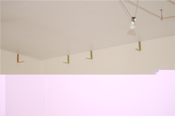 Als erstes habe ich die Winkel, dort wo die Bretter sitzen sollen, unterhalb der Decke an der Wand angebracht