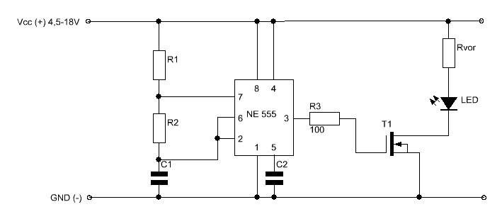 R1,R2,C1: Sorgen für die An bzw Auszeit, durch die Auf-und Entladung des Kondensators.