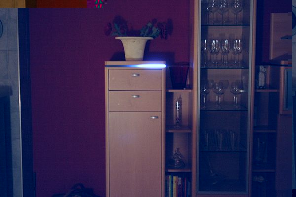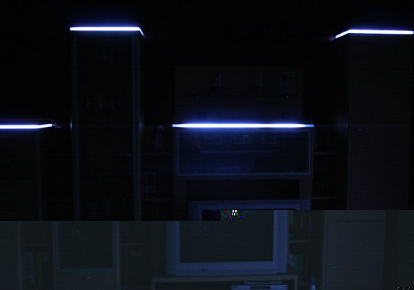 Beide Bilder sind bei 9V Spannung entstanden. Es folgen noch Bilder, bei denen die LED's auf 12V laufen, auf den Bildern sieht man allerdings den Unterschied zwischen 9V und 12V nur minimal. Ich bevorzuge den 9V Betrieb. Bei den 12V ist man schon fast beim fernsehen abgelenkt, weil die LED's dann doch recht hell sind.