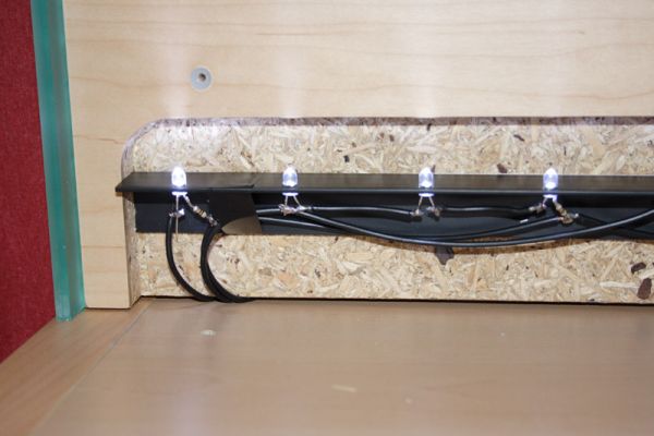 Damit die einzelnen Kanten inkl. LED's untereinander verbunden werden können, werden entsprechend die Reihen- und Parallelschaltungen mit Lüsterklemmen versehen, wie man auf dem oberen Bild sehen kann.