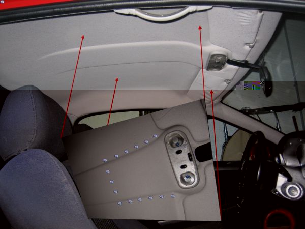 Wie man jetzt schon an Punkt 2. erkennt will ich das ganze am Dachhimmel machen und mir dort einfach die Innenraumbeleuchtung anzapfen.