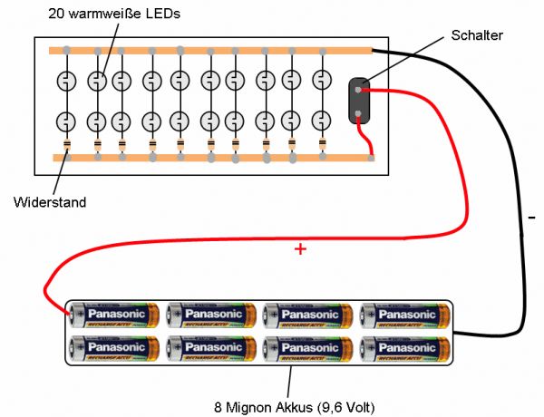 Hallo! Ich bin neu hier und suche jemanden, der mir sagen kann ob das, was ich mir überlegt habe, so hinhaut: http://www.free-space.at/ctk-downloads/LED_Videoleuchte.gif Das soll eine Videoleuchte für meinen Camcorder werden. Ich wollte die warmweißen LEDs aus dem Shop nehmen.(4V, 20mA). Danke scho...