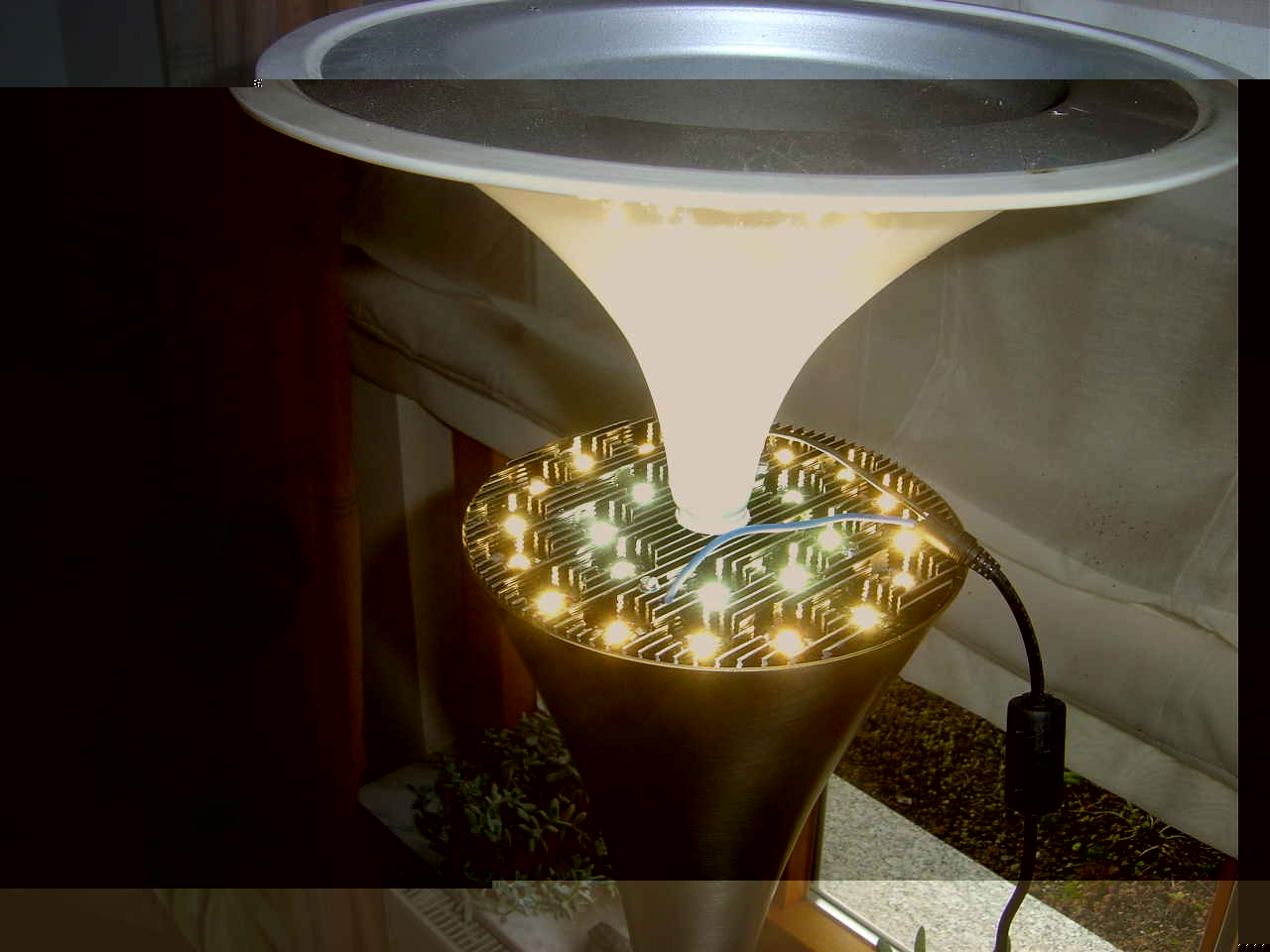 Sehr schön. DAnke. Ich finde, dass die Lichtfarbe im nicht direkt beleuchteten Bereich den gleichen blaugrau- Stich hat wie bei mir. Genau das ist der Grund, warum die holde Weiblichkeit die Lampe nicht mag.
