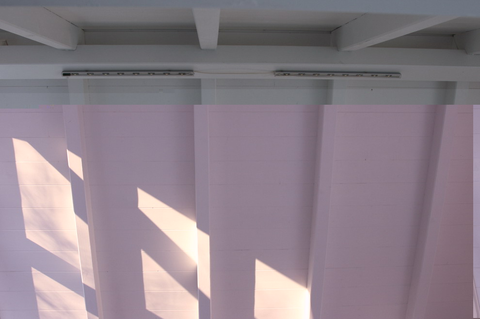 Links die Mauer, Garage LEDs unter der Dachrinne6m, ebenso am Haus unter der Dachrinne 6 m.
