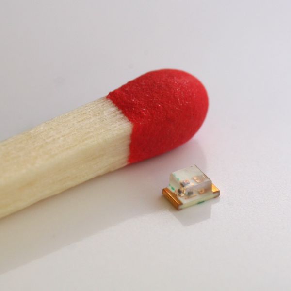 Top-SMD LED im Größenvergleich (Streichholz)