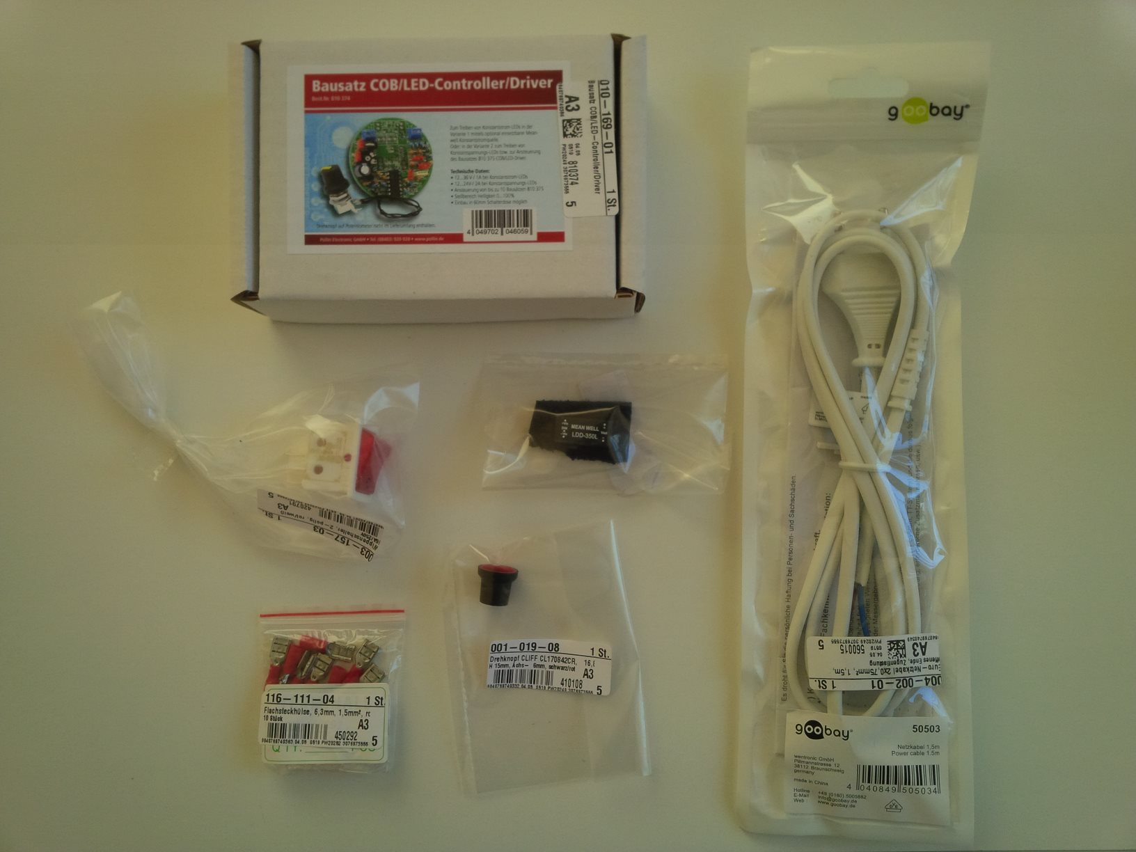 Vermutlich gibt es auch noch andere Lösungen (besser oder billigere) für die dimmbare Stromversorgung. Wer etwas weiß, darf das gerne ergänzen. Ich bin erst mal froh, nach langem Suchen überhaupt eine brauchbare Kombination gefunden zu haben.