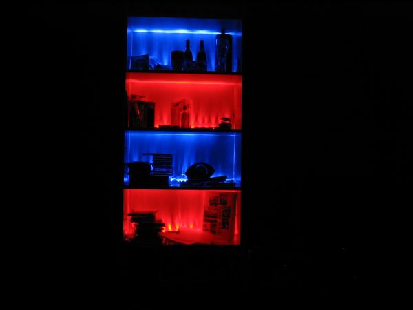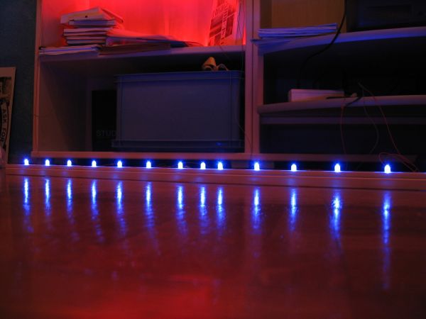 LEDs: pro Leiste 15 Stück, also 45 blau und 45 rote LEDs