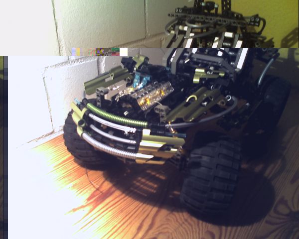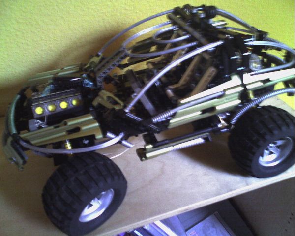 Bei dem Auto habe ich manche Dinge verändert und zusätzliche Teile montiert (z.B. Dach, hinten zusätzliche vier Zylinder angebracht, die Front verändert, Kotflügel angebracht und halt LEDs angebaut).