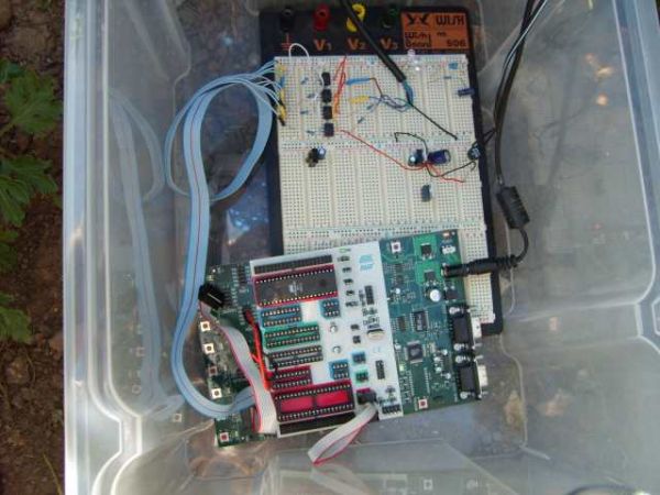 Der "Großrechner" ist, wie er auch oben geschrieben hat, noch ein Provisorium. Es handelt sich um das Programmierboard für einen Microprozessor, der später die Steuerung übernimmt.