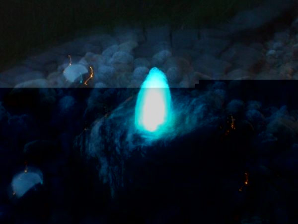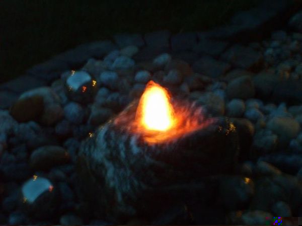 Also der Stein ist schon ganz gut beleuchtet, stimmt es gibt ein schönes geflacker rund um die Wassersäule.