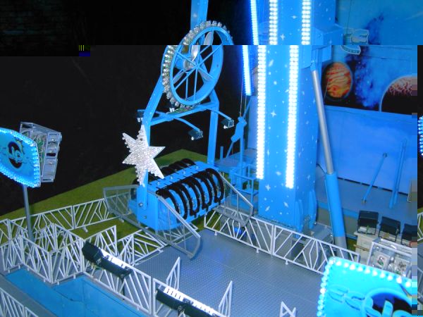Ich würde ja ein Video mit meinem Fotoapparat machen wenn in einer Woche die Motorsteuerung fertig ist. Aber ich habe keine Ahnung wie das Video ins Forum gepostet wird. Schreibt mir mal ein paar Tips dann wird es schon klappen.Der Propeller ist auch am Originalgeschäft nur eine Atrappe. Er hat mit dem Antrieb nichts zu tun. Der Antrieb sitzt am Ende der Säule wo auch die Schleifringe für die Stromübertragung sitzen. Auf einem Bild kann man das sehen.Zur Zeit baue ich die Motorsteuerung und dann ist das Modell fertig. Das Modell ist sehr schwer weil am Ende des rotierenden Armes alles mit Blei als Kontergewicht gefüllt ist. Sonst würde sich der Arm niemals drehen. Am 6.7. in Düren ist das keine Modellbauausstellung. Dort im Stadtcenter habe ich dann meine komplette Kirmes aufgebaut. Die Ausstellung ist 21 Quatratmeter groß und wird über Schaltuhren gesteuert. Ich bin nur beim Auf und Abbau da.