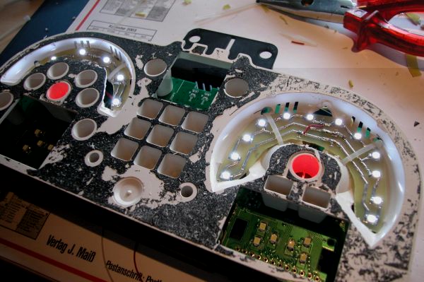 Ziel war es die Tachohintergrundbeleuchtung meines Fiestas von ekel grün auf rot-weiß umzubauen.