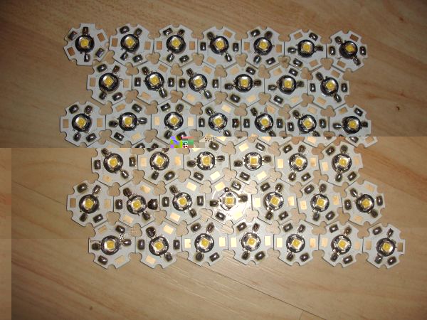 als erstes hab ich mir mal so überlegt, was ich so brauche.. P4's? ja.. unzwar nich zu wenige.. erstmal n paar zum test geholt.. gut so.. danach stand fest.. kaltweisses licht beim fernsehen.. nein danke! also warmweisse her.. hab dan mal flux 40 p4's in warmweiss geordert.. leider gibs die nich auf starplatinen hier im shop.. aber dazu später mehr.. hier erstmal n foto der leds.. damit ihr neidisch werdet..