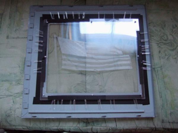 Als Logo hab ich mir die USA Flagge ausgewählt. Es soll später so ausschauen als würde sie im Wind wehen. Zunächst einmal habe ich die Vorlage von unten gegen das Plexi kleben. Ich habe die Schrauben zur Sicherheit wieder montiert, so vermeide ich Kratzer an der Unterseite. So nun das ganze Sauber abkleben und los geht's: