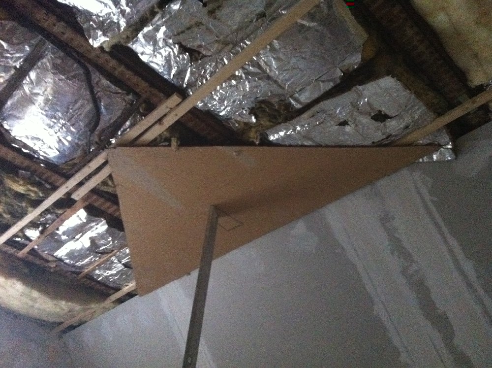 Die Decke is 2m x 4m, wollte ein Dreieck 2m x 0,90m aus einer 8-10mm starken Holzplatte dann entweder direkt an die Unterkonstruktion schrauben was allerdings dann problematisch wird da ich dann kleine Füße oder so was unterlegen muss da sonst die Glasfasern an die Dachlatte gepresst werden... weiß dann aber auch nicht wies optisch aussieht.