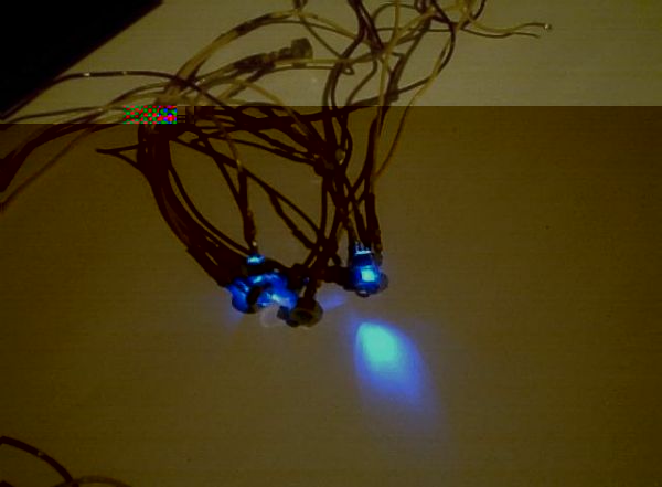 Verwendet habe ich diese Led´s 3mm Ultrahelle LED blau 6900mcd 20° 3.1V + 470Ohm Widerstände pro LED.