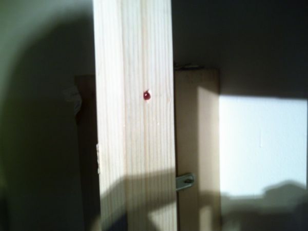 Also zuerst hab ich die Löcher gebort. Bei mir sind sie ca 10cm auseinander mit einem 5,5er Bohrer damit ein LED versenkt hinein kann. Bei einem 5er Bohrer bleibt das LED stecken und bei nem 6er rutscht es durch also der 5,5er passt gerade so. Ich hab die zweitbilligesten LED's genommen: http://www.leds.de/product_info.php?inf ... -2-1V.html . Dann hab ich ein 12V Netzteil genommen an die ich mit einem 150 Ohm Widerstand 5 LED's rangelötet habe. Und an die nächsten drei auch. Denn wenn ich vor jedem LED einen Widerstand gelötet hätte dann wären ca. 10V verloren gegangen.