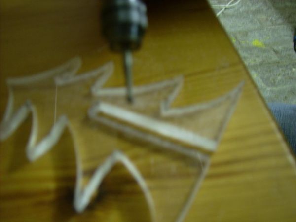 An der/den Stelle(n) wo LED's über dem Baumstamm sitzen, werden Löcher gebohrt