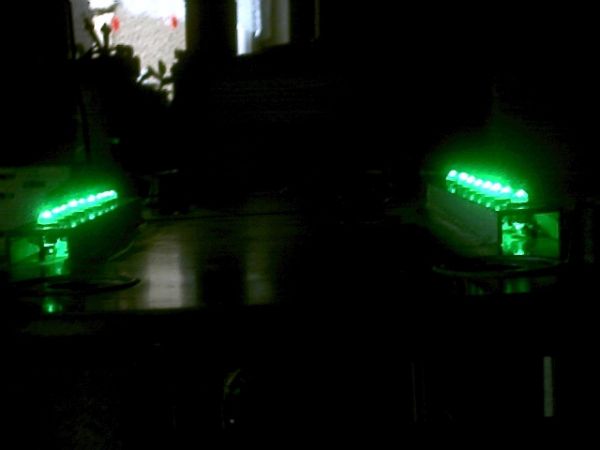 So dann hätte ich da noch eine 2. Idde, und zwar würde ich auch gerne mein schreibtisch anders weitig beleuchten, und zwar auch mit Led leisten, hatte mir da schon mal was ausgedacht, also eine länge von 26cm pro leiste mit je 9 Led's drine mit einem abstand von jeweils 3cm, und der am Rand sitzende abstand beträgt auf jeder seite 1cm also insgesammt 2cm ;-). So hier ist mal mein Muster, G-W-G-W-G-W-G-W-G, dabei steht das G für Grün und das W für Weiß, nun weis ich nicht wie das herrauskommt im endefekt, das muss ich noch einmal austesten, evtl. wirds auch anders mit der Farbverteilung, aber ich denke mal 9 Led's werden schon pro leiste hinein kommen, und wie viele leisten ich baue weis ich auch noch nicht so richtig, aber 3 stück ganz sicher, das steht fest. Also was haltet ihr von der Farbkombi Grün und Weiß?, ich weis halt nicht wie es aussehen würde, deswegen werde ich das noch mal austesten, wenn es mir zu weiß ist kommt halt mehr grün, und das selbe dann auch umgekehrt.