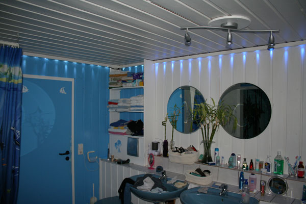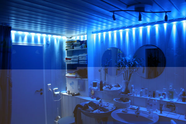 Idee: Eine Badbeleuchtung ist natürlich immer vorhanden, aber eine "Ramontische" Leuchte hat nicht jeder in seinem Bad (von Kerzen mal abgesehen). Nachdem ich bei der Haustür gleich die LEDs mitbestellt habe, konnte dem einen Bau gleich der andere folgen.