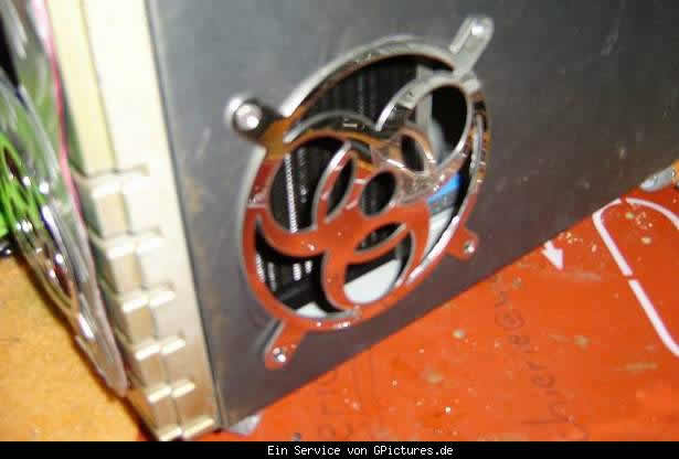 Nun ging es an´s Netzteil,hier wurde erdt einmal die "Rüchwand abgeflexst und gegen eine neue aus Streckmetall ausgetauscht,ein Neuer rot beleuchteter lüfter mußte natürlich auch hinein.