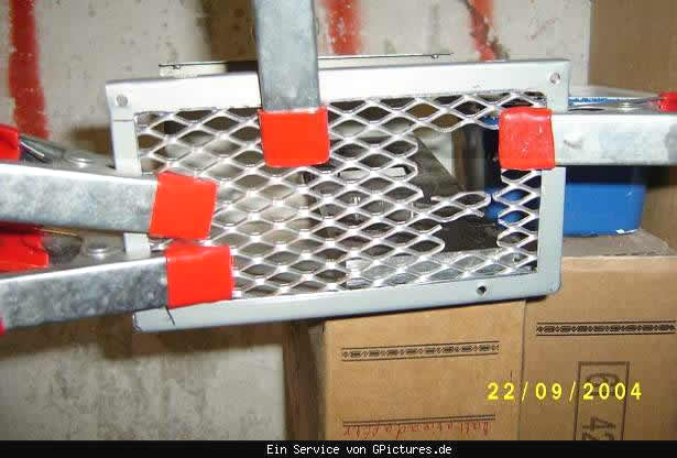 An der Rechten seite wurde ein 120ér Loch geschnitten und eine Passende Blende aus 2mm Riffelblech.