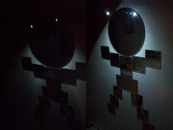 Zuerst die Spiegel in Form eines Männchens an die Wand kleben (mit doppelseitigen Klebeband oder Tesastips)