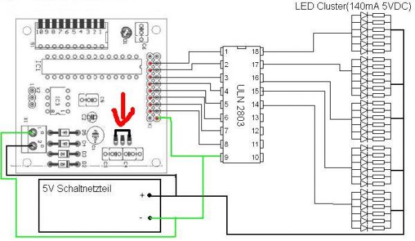 Wenn du die steuerung an 12V betreiben möchtest muss das IC de 7805 drinbleiben nicht wie bei mir der brücke..da ich ein 5V nt benutzte!