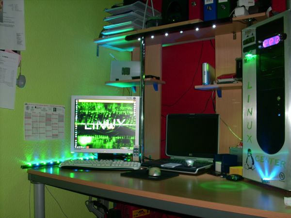 Sieht wirklich sehr schön aus das ganze, muss man sagen. Mh du kannst ja auch noch eine Tisch Unterbodenbeleuchtung bauen, weil ich sehe dein tisch ist dazu gut geeignet^^. NA ja muss auch mal led leisten an meinen Tisch dran machen evtl. nächste woche oder so^^.