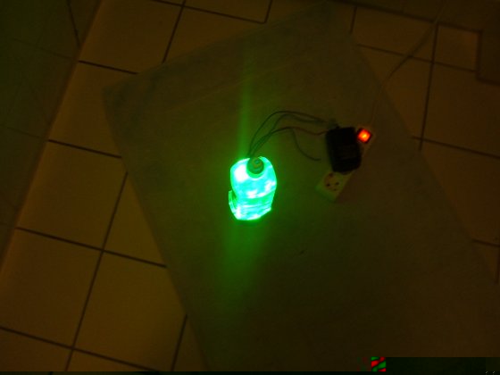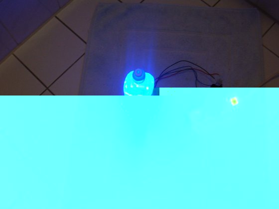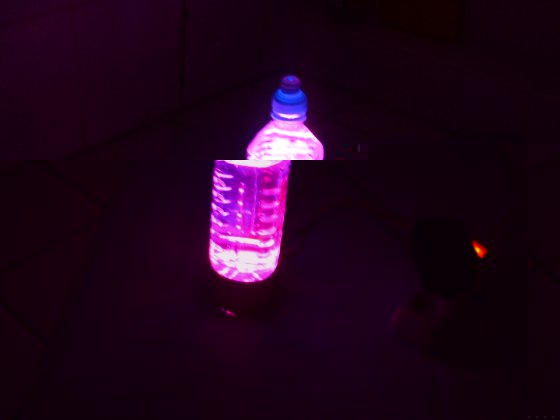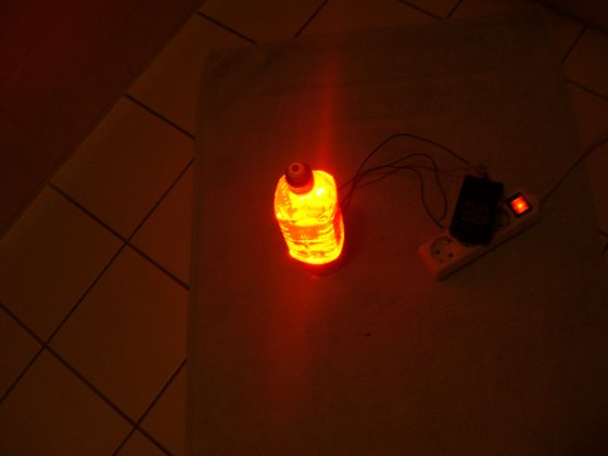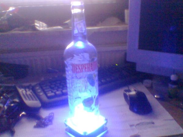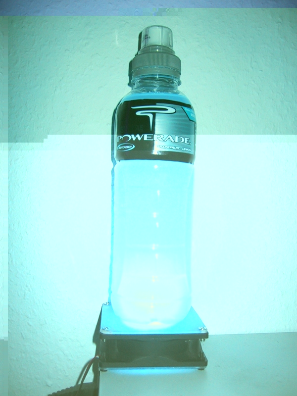 Ich habe Spiegelklebeband genommen 10. Alles Zusammen schrauben (auf dem Bild steht ein powerade drauf ) Jetzt nur noch das Kabel an eine stabilisiert 12V quelle anschliessen (sonnenbrille aufsetzen 8) )